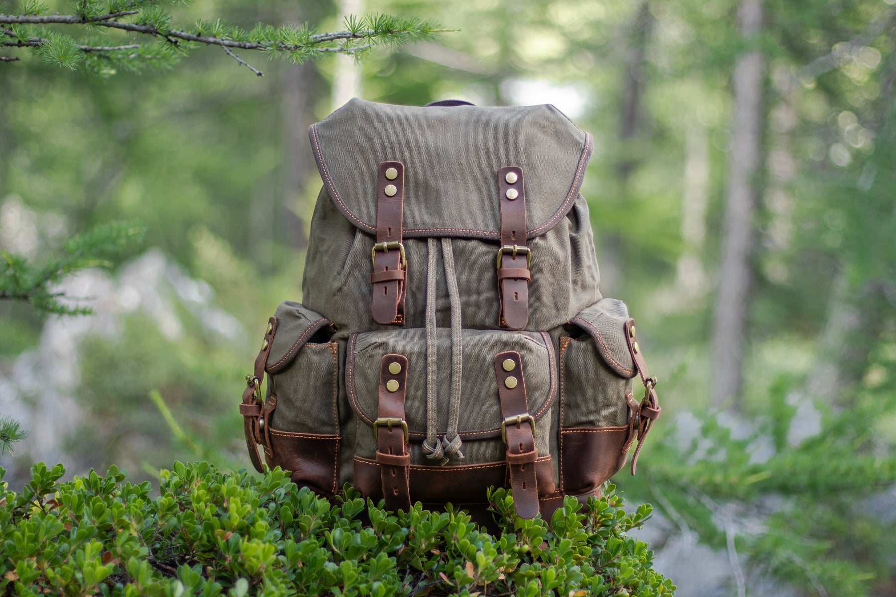 Wanderrucksack | Robuster Canvas-Stil | Kordelzug oben & Zubehörtaschen