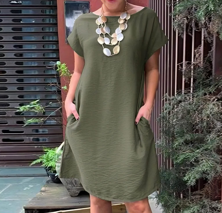 Alicia - Lockeres Kleid mit Rundhalsausschnitt und kurzen Ärmeln für Frauen