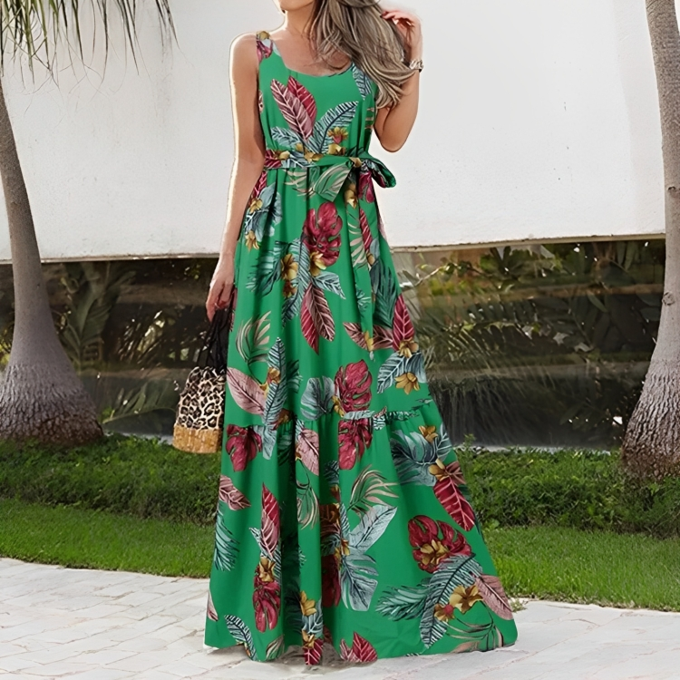 Anna - Elegantes langes ärmelloses Kleid mit Blumenmuster