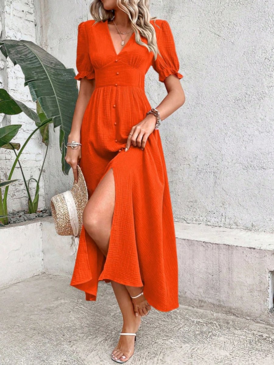 Breanna - Elegantes kurzärmeliges A-Linien-Kleid mit tiefem V-Ausschnitt und Rüschen
