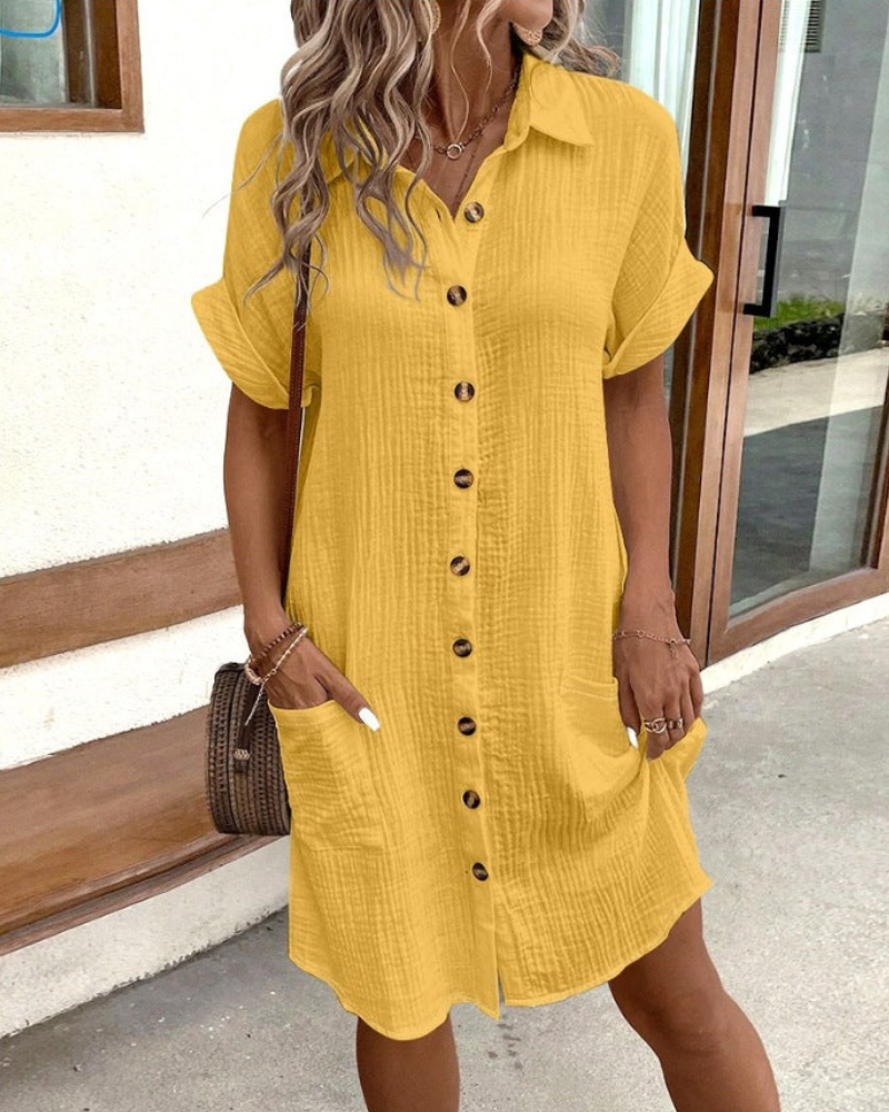 Elissa - Elegantes Kleid mit kurzen Ärmeln und Knopfleiste