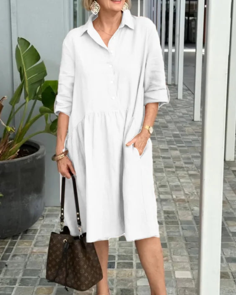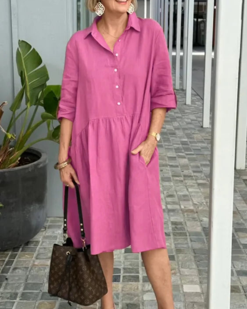 Jane - Damen Stylisches Midikleid mit halben Ärmeln und Knöpfen für Frauen