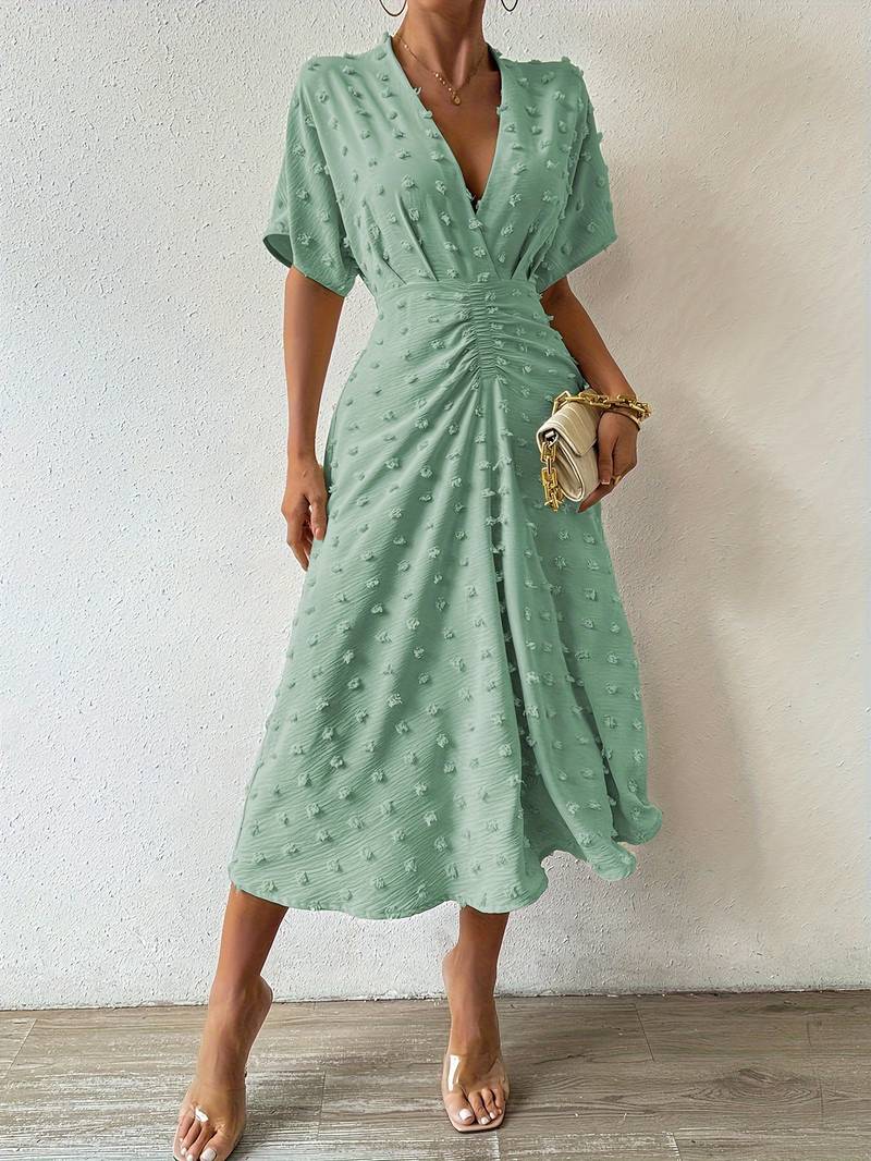 Janelle - Stilvolles Schweizer Tupfenkleid mit Rüsche für Frauen