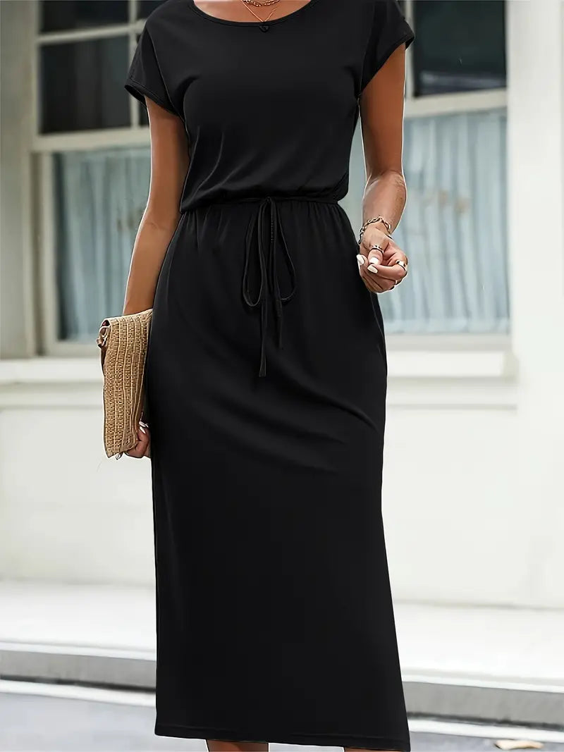 Lucy - Lässiges kurzärmeliges Kleid mit Rundhalsausschnitt und Bindegürtel für Frauen