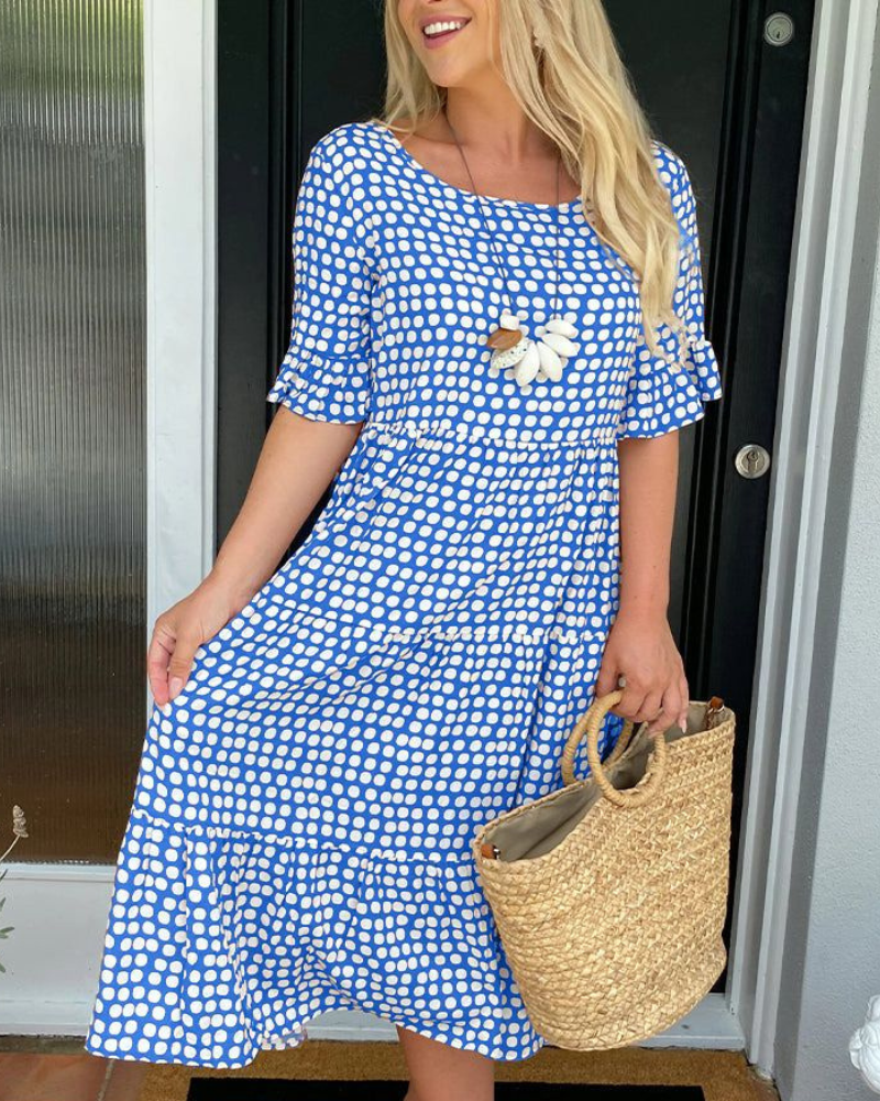 Samaira - Schickes lockeres gepunktetes kurzärmeliges Midikleid