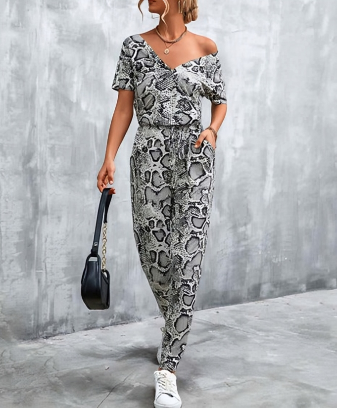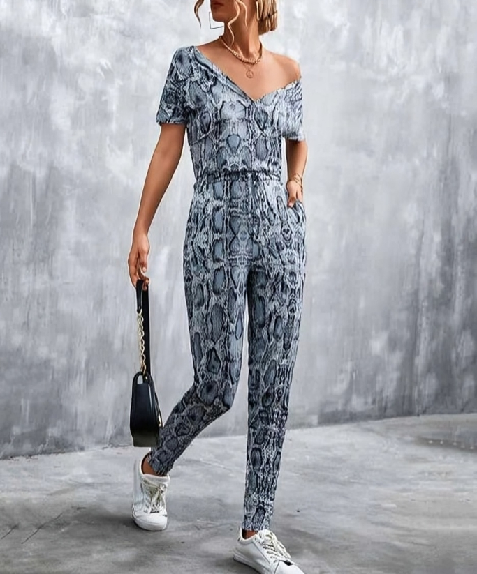Olivette - Schicker Jumpsuit mit tiefem V-Ausschnitt und modischem Druck