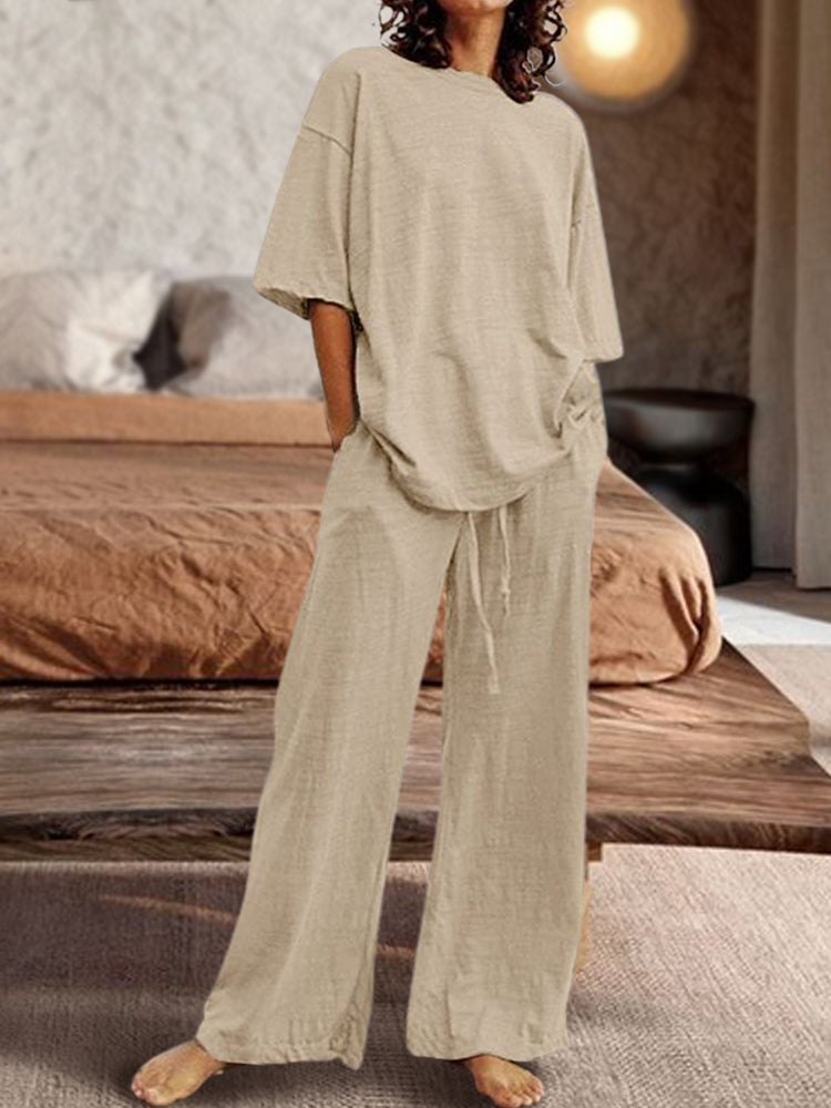 Jannessa - Lässiges Set aus übergroßem Hemd und Hose mit geradem Bein