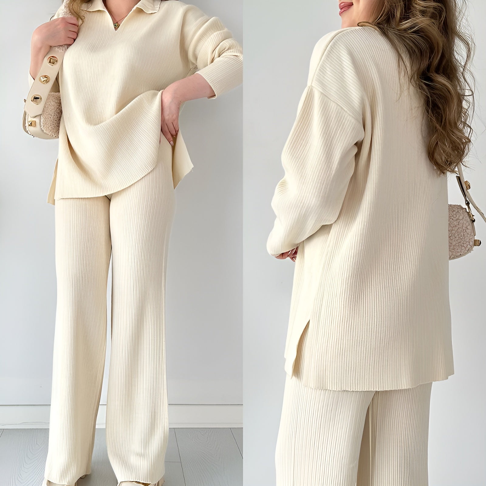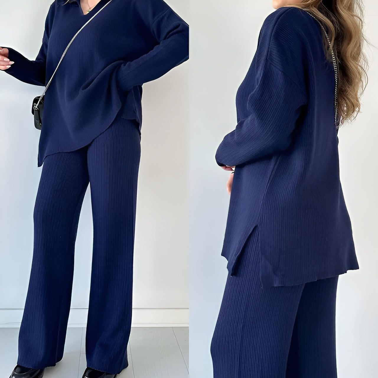 Julianna - Elegantes Set aus langärmeliger Bluse mit V-Ausschnitt und Hose