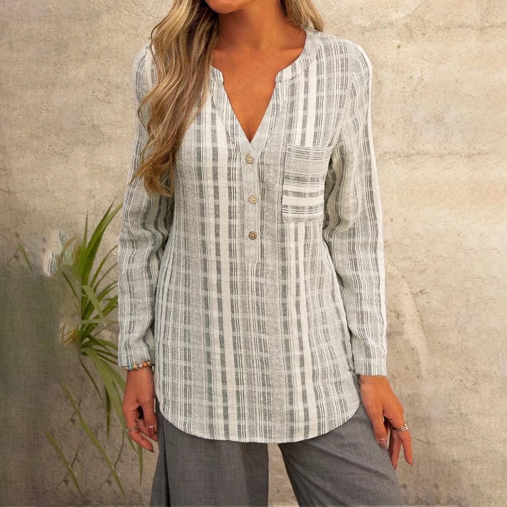 Loren - Lockere, lässige Langarmbluse mit V-Ausschnitt