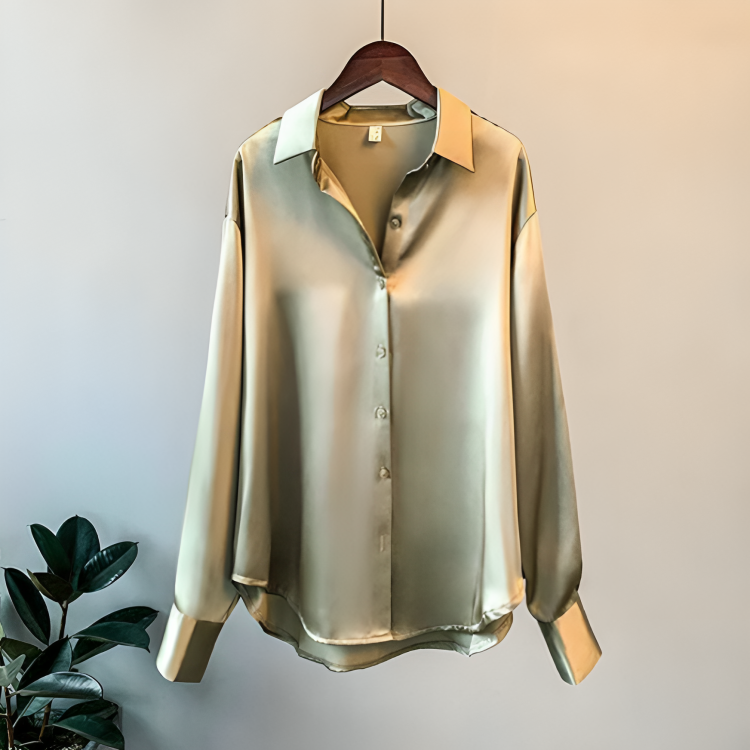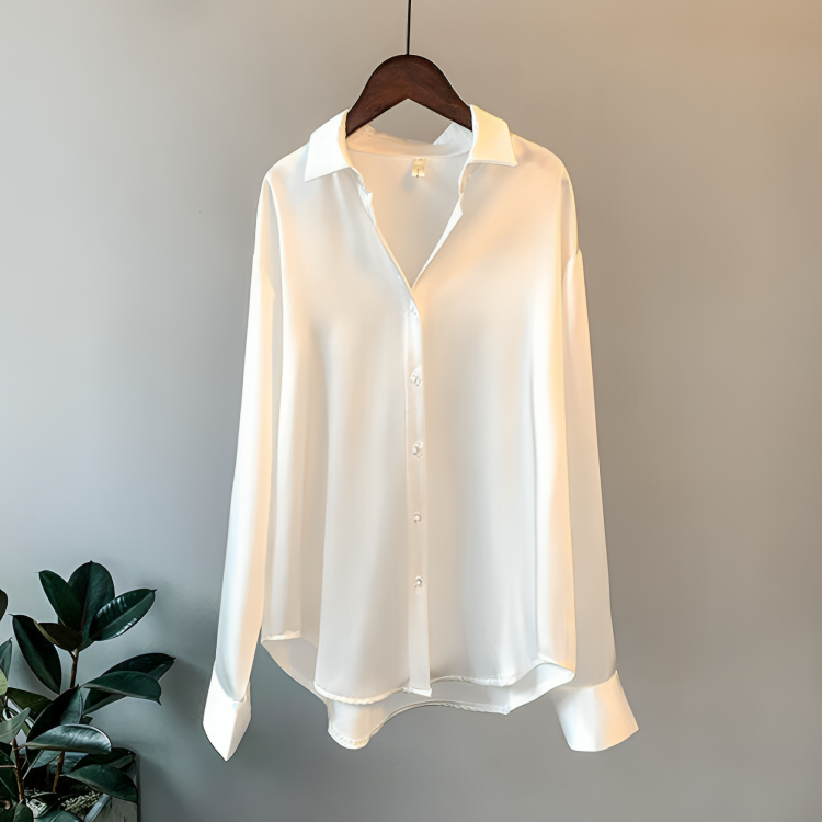 Paolina - Elegante langärmelige Bluse aus Satin mit Knöpfen