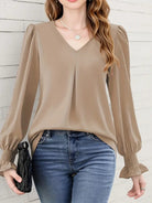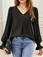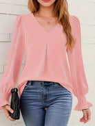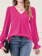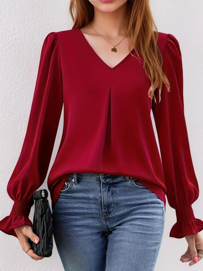 Rosalynn - Elegante langärmelige Chiffonbluse mit V-Ausschnitt