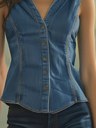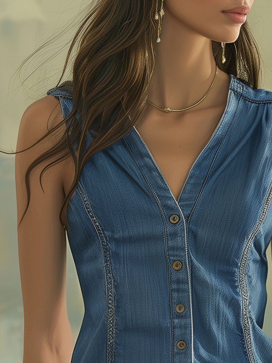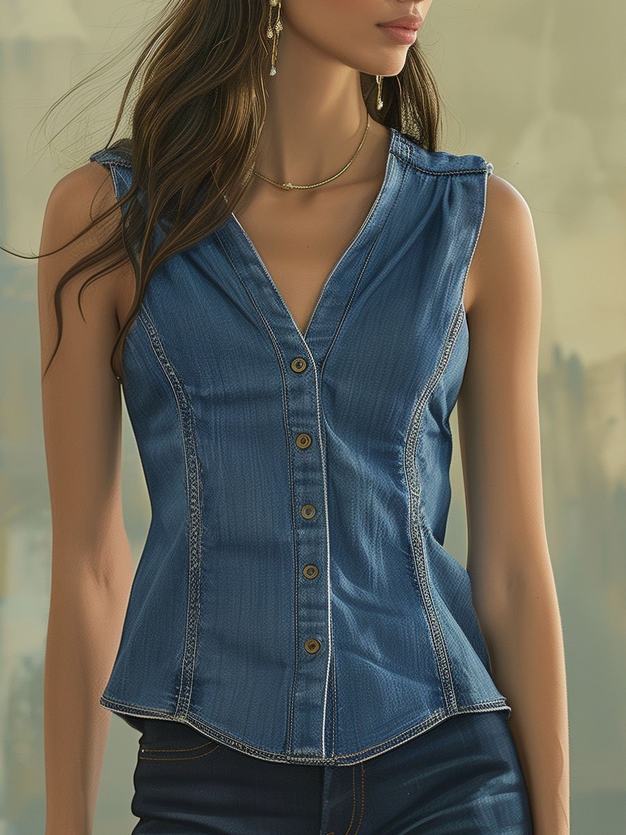 Walburga - V-Ausschnitt Casual Vintage Knopf Strickweste ohne Ärmel
