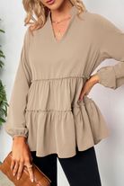 Zelenia - Locker elegante Langarm-Rüschenbluse mit V-Ausschnitt