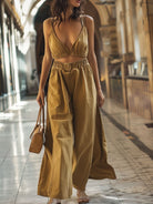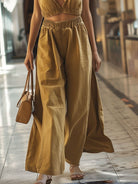 Sara - Set mit V-Ausschnitt, lässiger Jeansweste, geschlitzter weite Beinhose